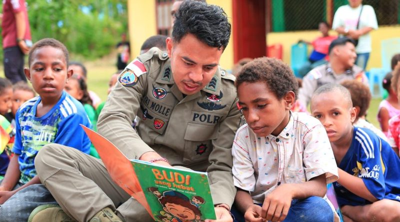 Personel Ops Damai Cartenz 2026 Hadirkan Keceriaan Lewat Belajar dan Bermain Bersama Anak Taman Baca Koya Tengah